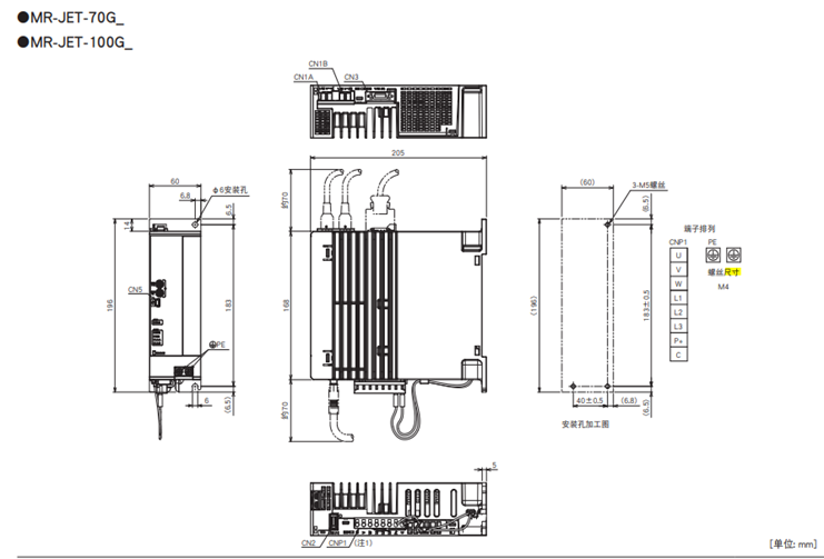 | MR-JET-100G | 6.0 | 三相或單相AC200V~240V50Hz/60Hz | 5.0 | 1.6 | |