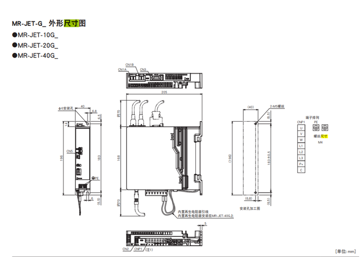 | 伺服放大器型號MR-JET-_(N1) | 10G | 20G | 40G | 70G | 100G | 200G | 300G | |