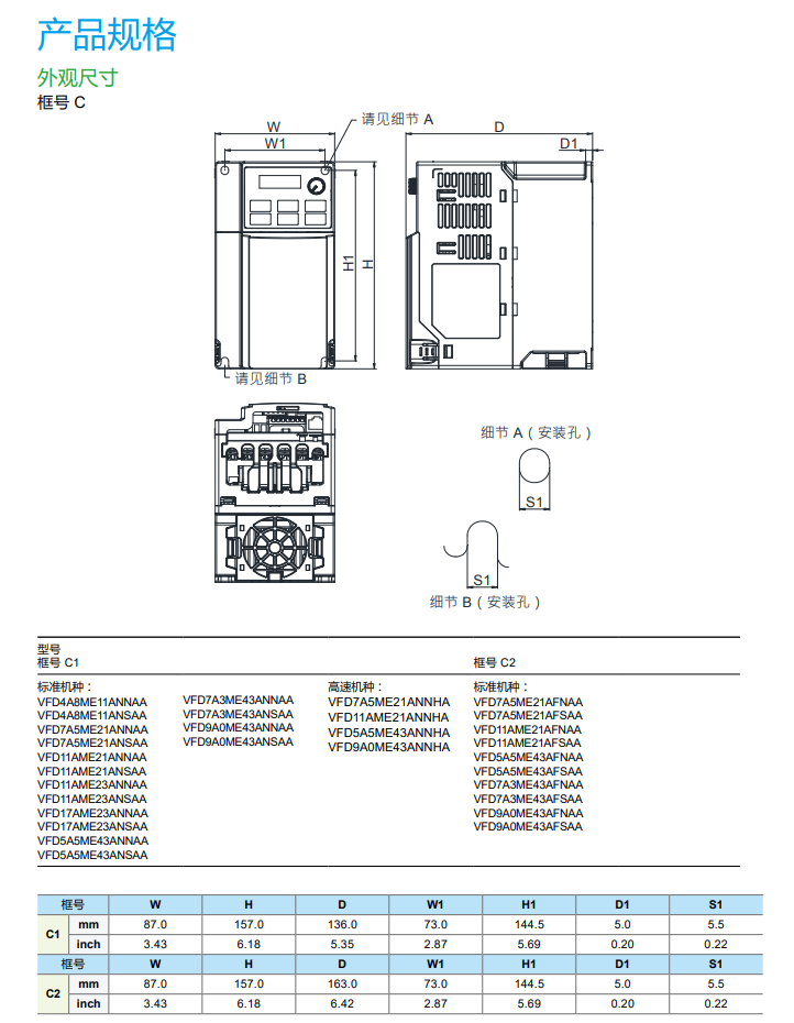 | VFD5 A5ME43ANNHA | 3 | 2.2 | 5.5 | C | 1.5 | ||
