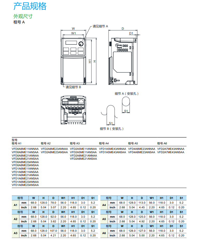 | VFD1A6ME11ANNAA | 1/4 | 0.2 | 0.4 | |||