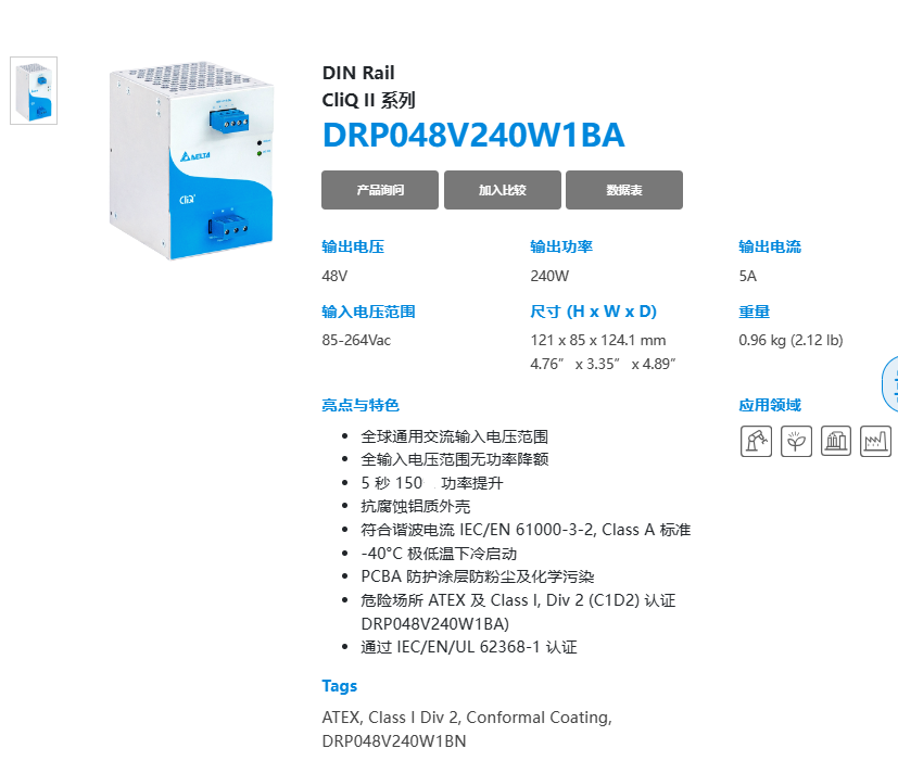 | 輸出 | DRP048V060W1Bp | DRP048V120W1Bp | DRP048V240W1Bp | DRP048V480W1Bp | |