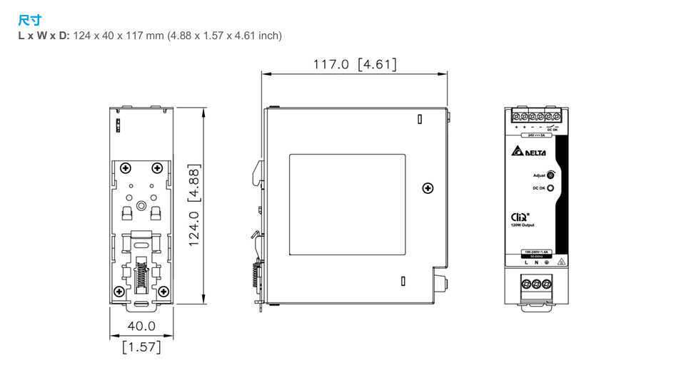 | 尺寸(H × W × D) | mm | 124 × 40 × 117 | 124 × 60 × 117 | 124 × 82 × 127 |