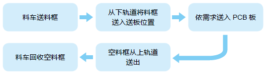 - 將PCB以料框裝載傳送至后端設(shè)備,自動送板