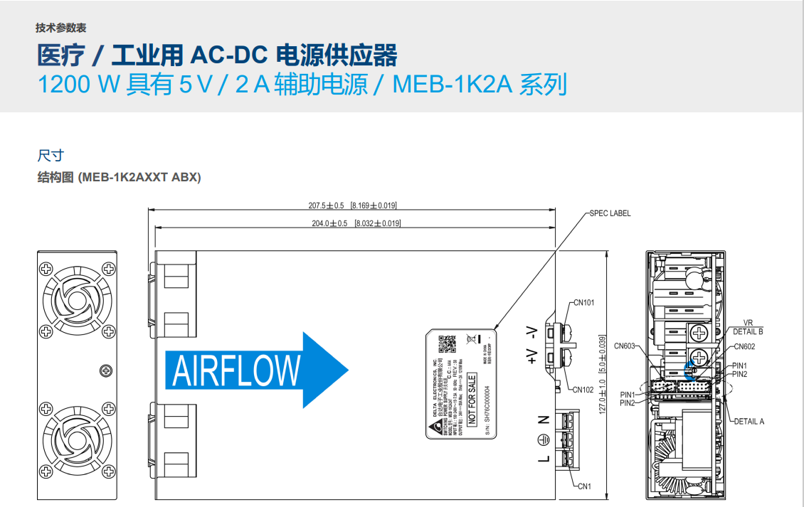 • 5" x 8.03" x 1.59" 尺寸優化,可高達 1200 Watt