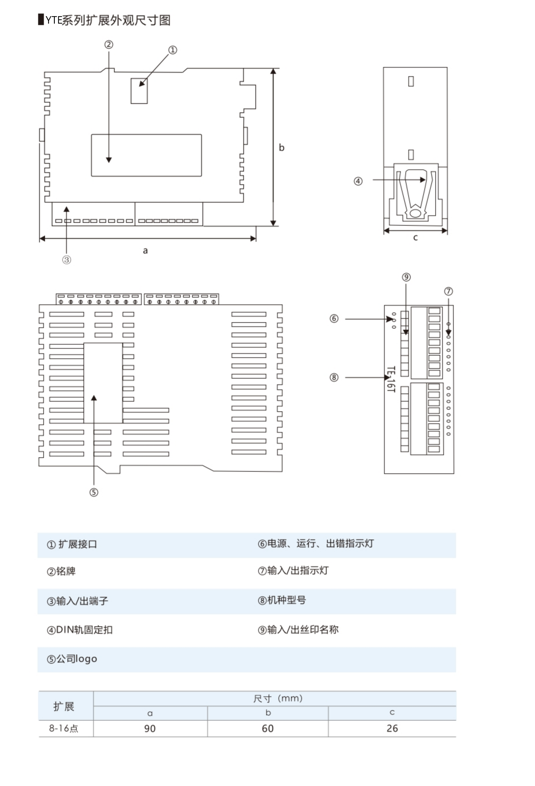 | YTE-16T-S | 8通道數字量輸人,8通道品體管輸出 | |