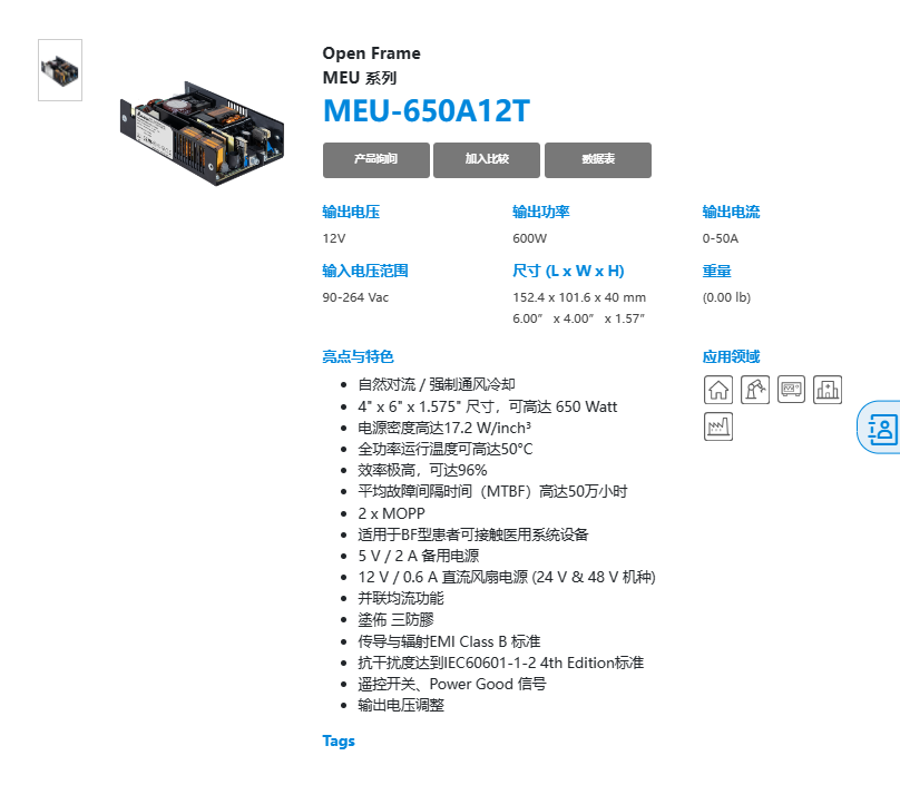 Open Frame MEU 系列 MEU-650A12T