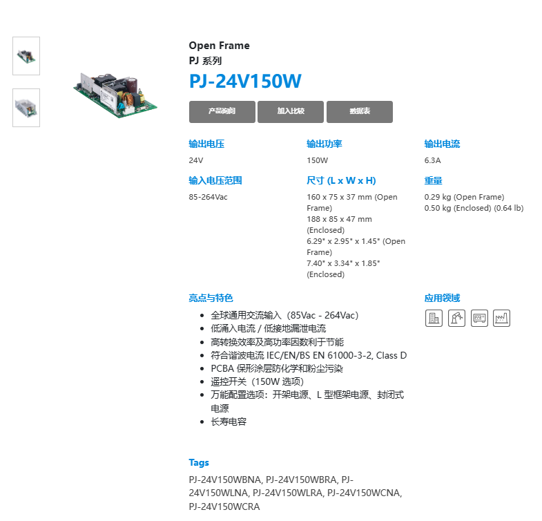 | 輸出 | PJ-24V30W口NA | PJ-24V50W口NA | PJ-24V100W口口A | PJ-24V150W口口A | PJ-48V50W口NA | |