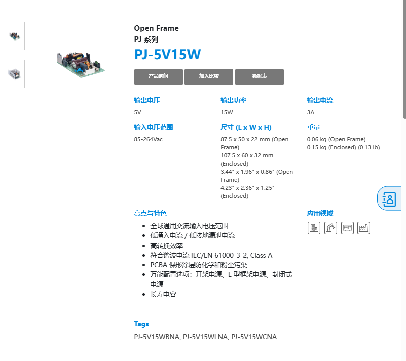 | 輸出 | PJ-5V15W口NA | PJ-12V15W口NA | PJ-12V30W口NA | PJ-12V50W口NA | PJ-12V100W口口A | PJ-12V150W口口A | |