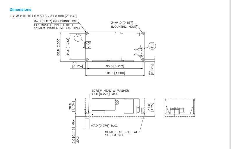 • 標準工業尺寸 2” x 4”