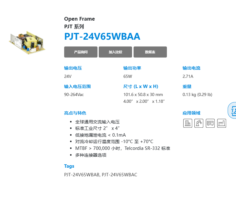 | 輸出 | PJT-24V40WBAp | PJT-24V65WBA口 | PJT-24V100WBA口 | PJT-24V100WBB口 | PJT-27V150WBNA | |