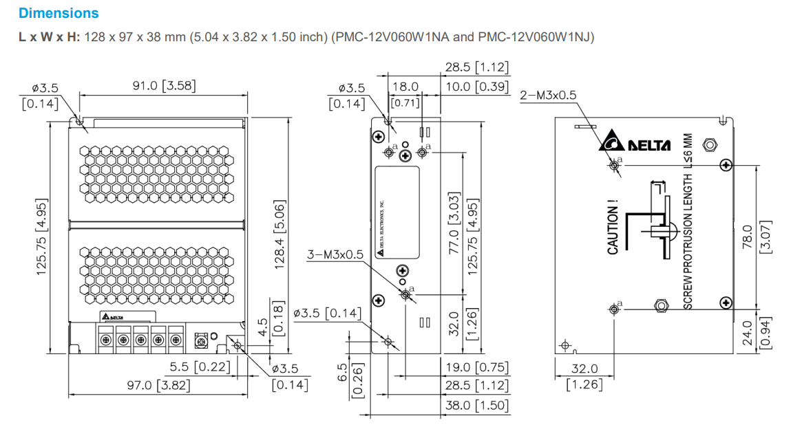 尺寸128 x 97 x 38 mm5.04” x 3.82” x 1.50”
