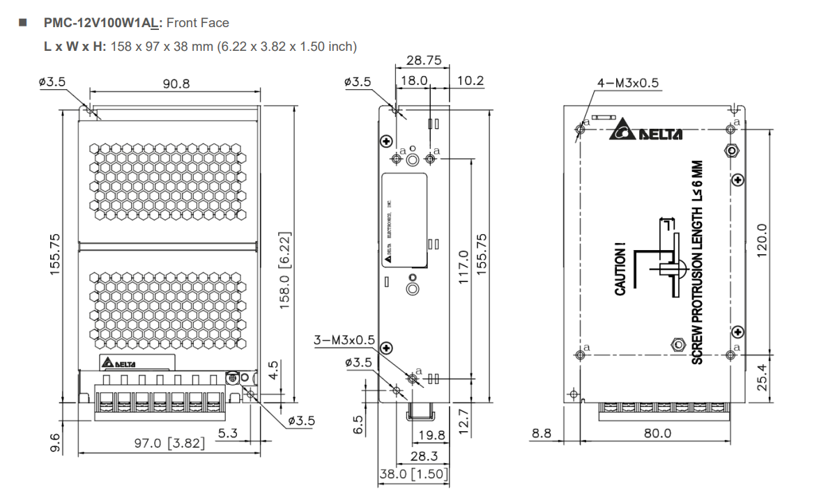 尺寸158 x 97 x 38 mm6.22” x 3.82” x 1.50”