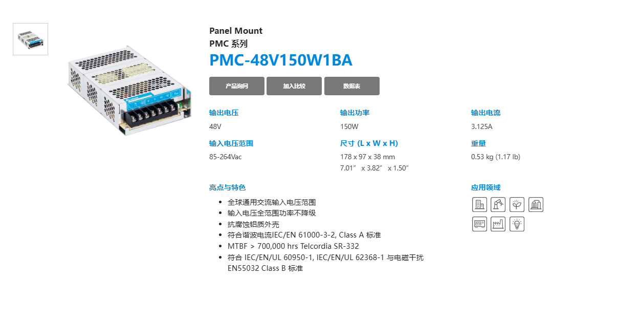| 輸出 | PMC-05V015W1AA | PMC-12V150W1B | PMC-12V600W1BA | |