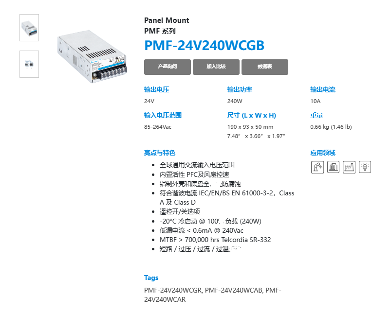 - 符合諧波電流 IEC/EN/BS EN 61000-3-2,Class A 及 Class D