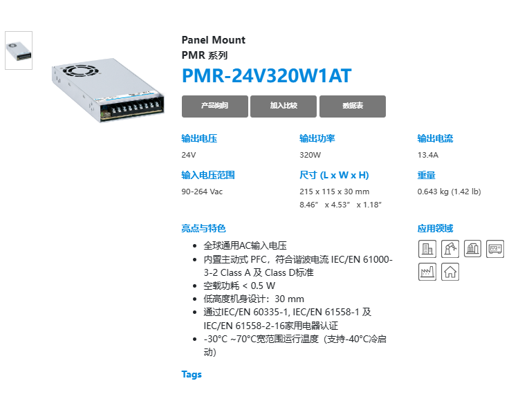 輸出 PMR-12V320W1AT PMR-24V320W1A PMR-36V320W1AT PMR-48V320W1AT