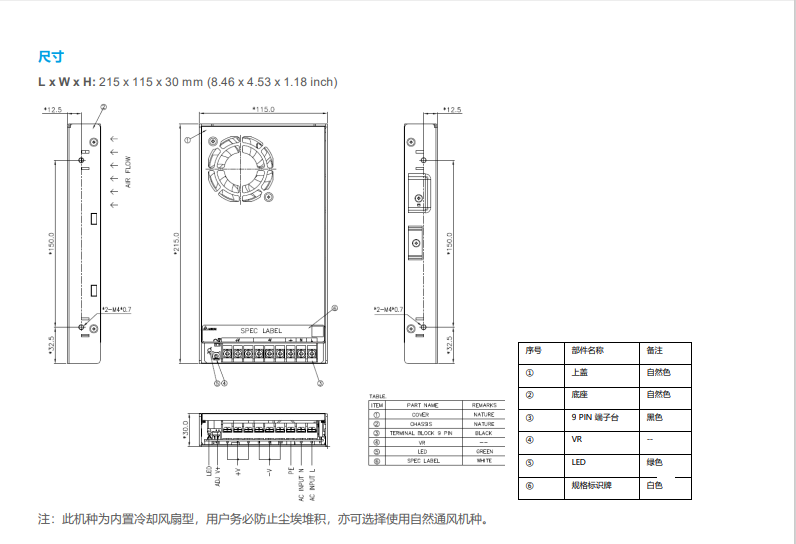 尺寸(L×W×H) mm 215×115×30 215×115×30 215×115×30 215×115×30