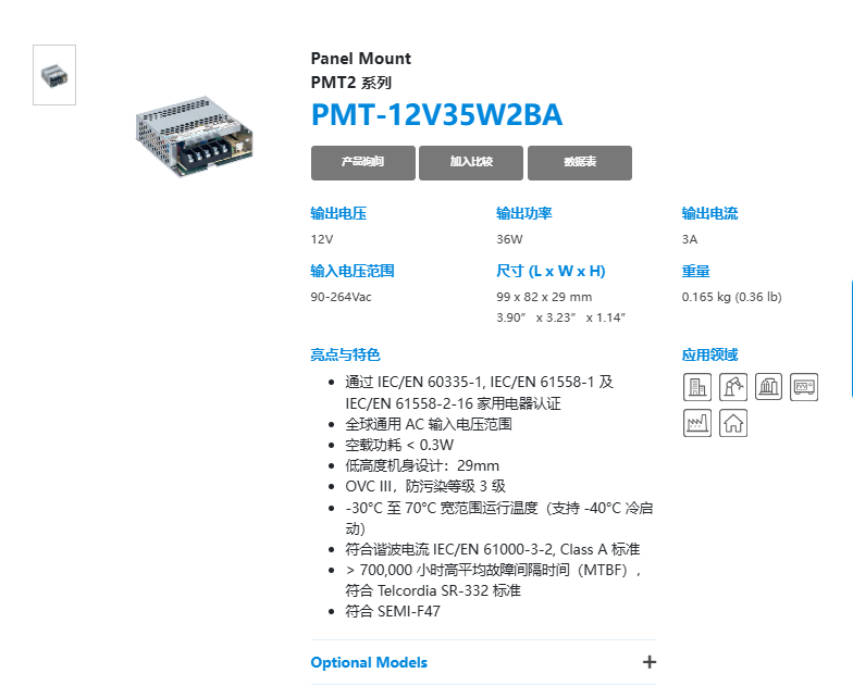 | 輸出 | PMT-12V35W2BA□ | PMT-12V50W2BA□ | PMT-12V75W2BA□ | PMT-12V100W2BA□ | PMT-12V150W2BA□ | PMT-12V150W2CA□ | PMT-12V200W2B□□ | PMT-12V350W2B□□ | |