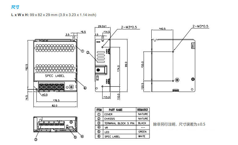 | 尺寸(L × W × H) | mm | 99 × 82 × 29 | 99 × 82 × 29 | 99 × 97 × 30 | 129 × 97 × 30 | 159 × 97 × 30 | 159 × 97 × 30 | 159 × 97 × 30 | 215 × 115 × 30 |