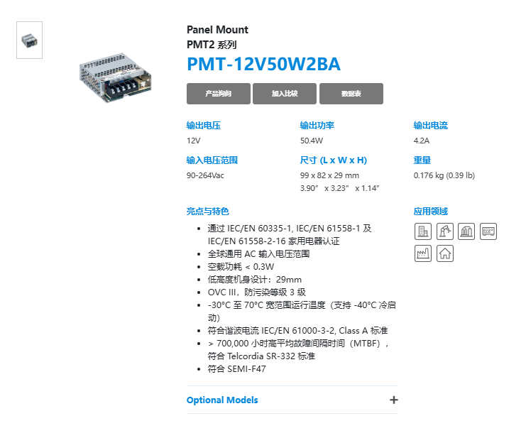 輸入電壓范圍 90-264 VAC 90-132 VAC, 180-264 VAC