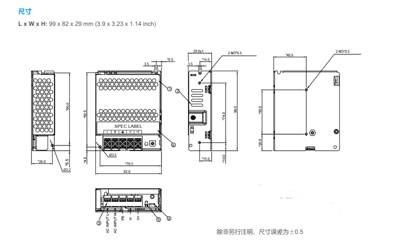 | 尺寸(L × W × H) | mm | 99 × 82 × 29 | 99 × 82 × 29 | 99 × 97 × 30 | 129 × 97 × 30 | 159 × 97 × 30 | 159 × 97 × 30 | 159 × 97 × 30 | 215 × 115 × 30 |