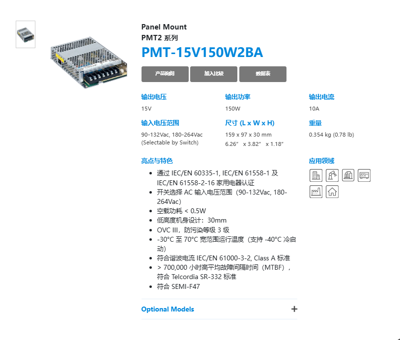 輸出 PMT-15V35W2BA PMT-15V50W2BA PMT-15V75W2BA PMT-15V100W2BA PMT-15V150W2BA PMT-15V150W2CA
