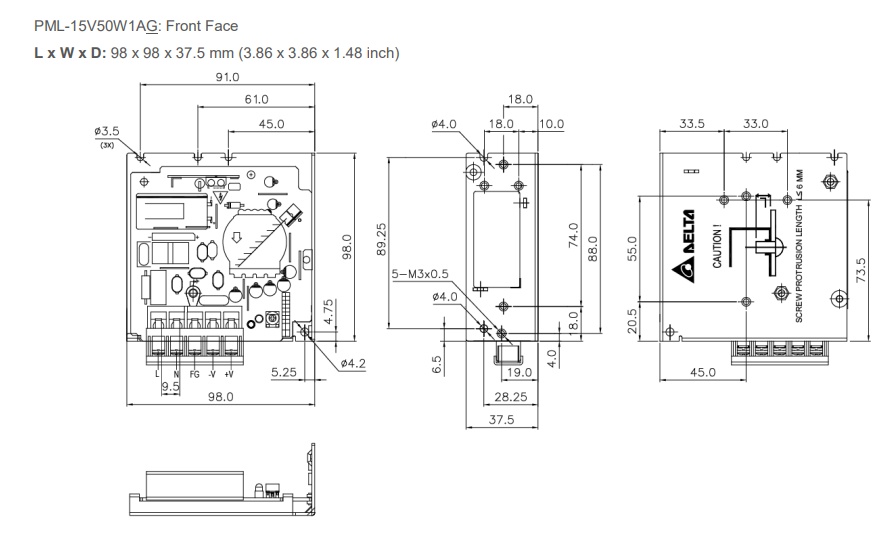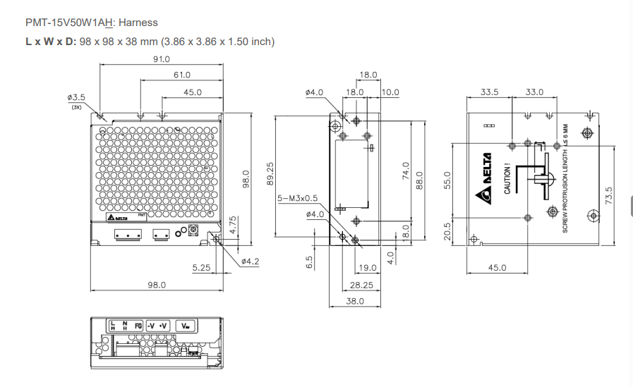 | inch | 3.90 × 3.23 × 1.14 | 3.90 × 3.23 × 1.14 | 3.90 × 3.82 × 1.18 | 5.08 × 3.82 × 1.18 | 6.26 × 3.82 × 1.18 | 6.26 × 3.82 × 1.18 | |