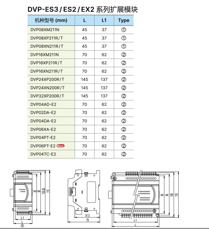 | DVP-ES3 / ES2 / EX2 系列數字 / 模擬 / 特殊模塊 (直流 24 V 供應) | ||||||||
