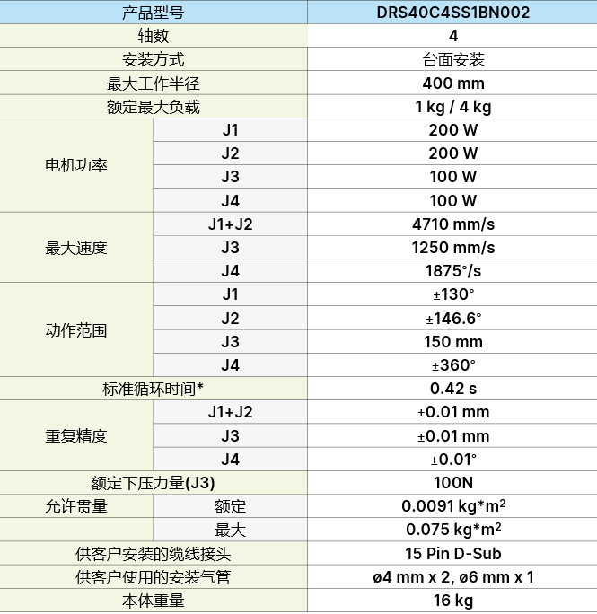 * 負載 1 kg 時,上下移動 25 mm,水平移動 300 mm,往返所需的時間。測試環境溫度 25 oC, 環境相對濕度 45 ~ 65百分之 RH