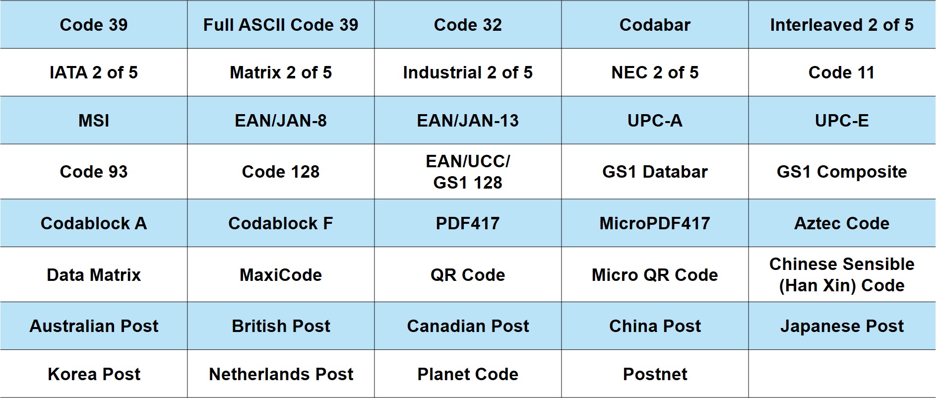 支持條形碼類型